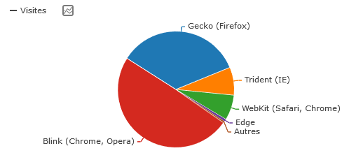 Les navigateurs les plus courants sont Chrome (43,9%), Firefox (34%) et Internet Explorer (7,3%). Au moins, il y a des gens sous Windows 10 qui utilisent des navigateurs plus sympas qu’IE, c’est bien. Edge n’a pas encore la cote, visiblement, puisque seuls 0,7% des visiteurs l’utilisent… même quota pour Iceweasel.