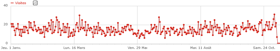 Avant de débuter, je tiens à préciser la provenance de mes chiffres. Comme l’année passée déjà, les statistiques que je présente ici sont issues de mon instance Piwik, qui traque doucement les visiteurs de ce site. Cela veut dire que ces données concernent les visiteurs qui décident de se laisser pister (pas de flag DoNotTrack activé dans le navigateur, pas de blocage de tracker Piwik et pas de cookie anti-Piwik). Les adresses IP ne sont pas conservées en totalité (seuls les 16 premiers bits sont inscrits, exemple « 192.168.0.0 »). Pour terminer, les chiffres de décembre on sauté suite à la dernière mise à jour de Piwik, ne me demandez pas pourquoi… BREF !